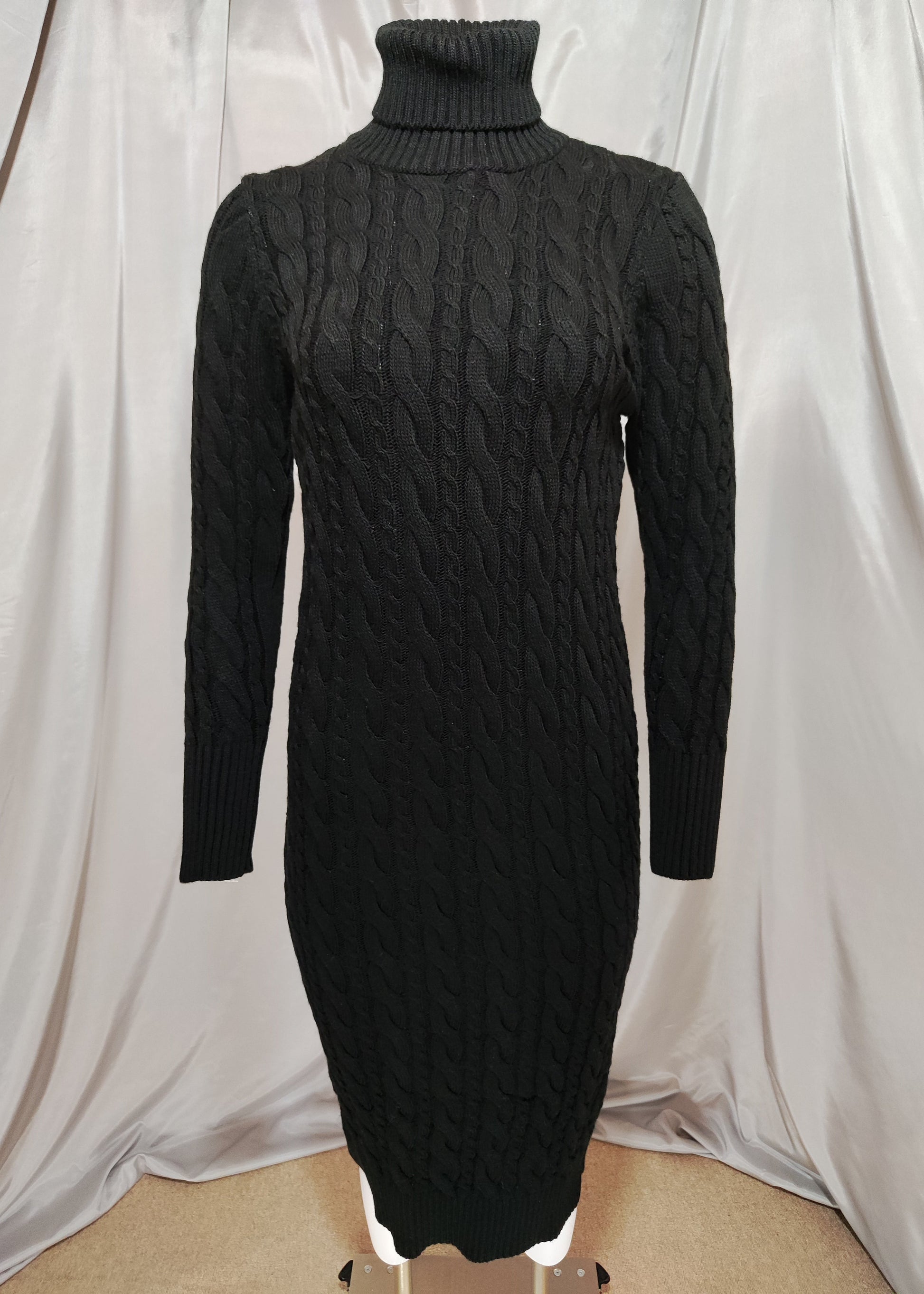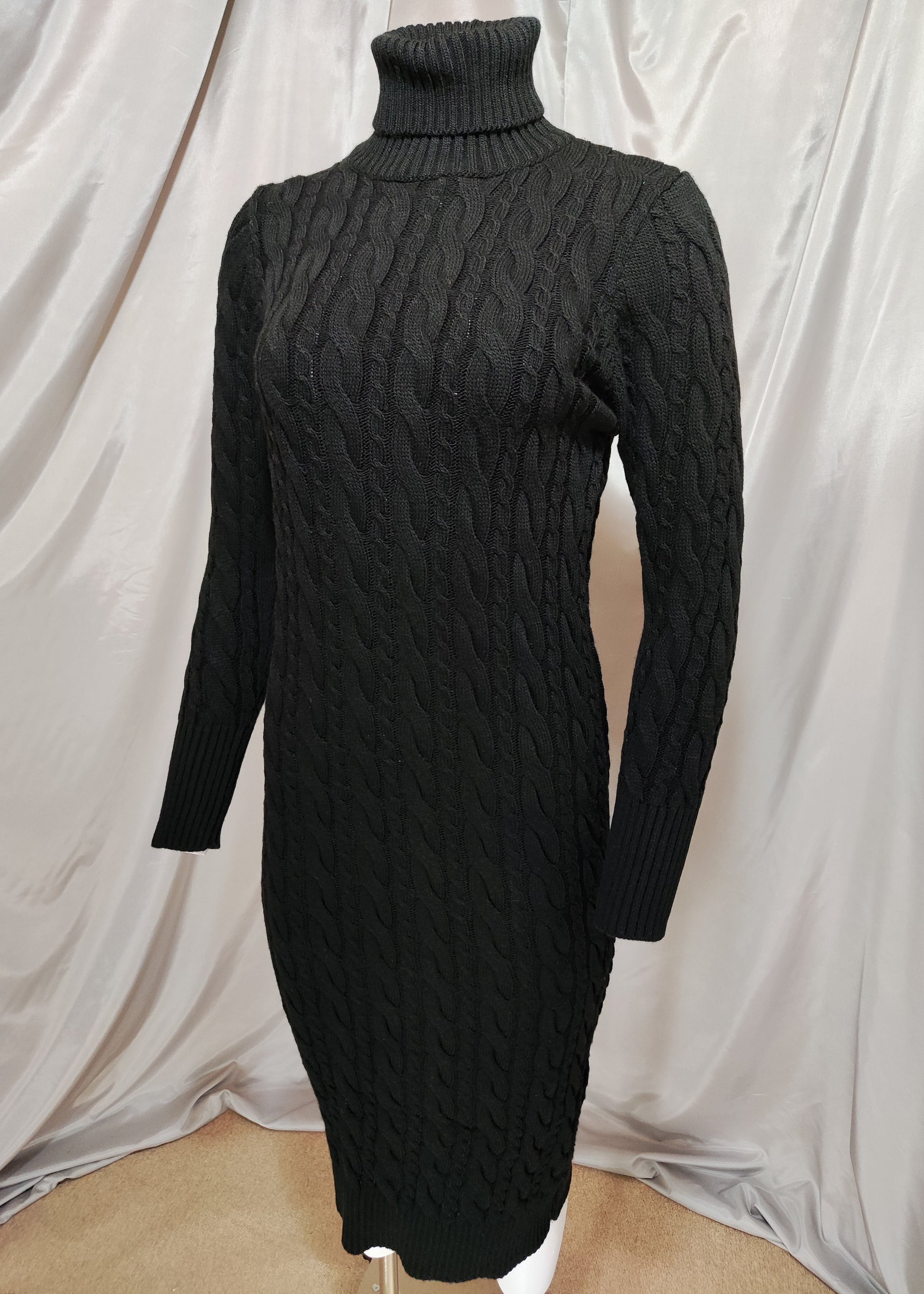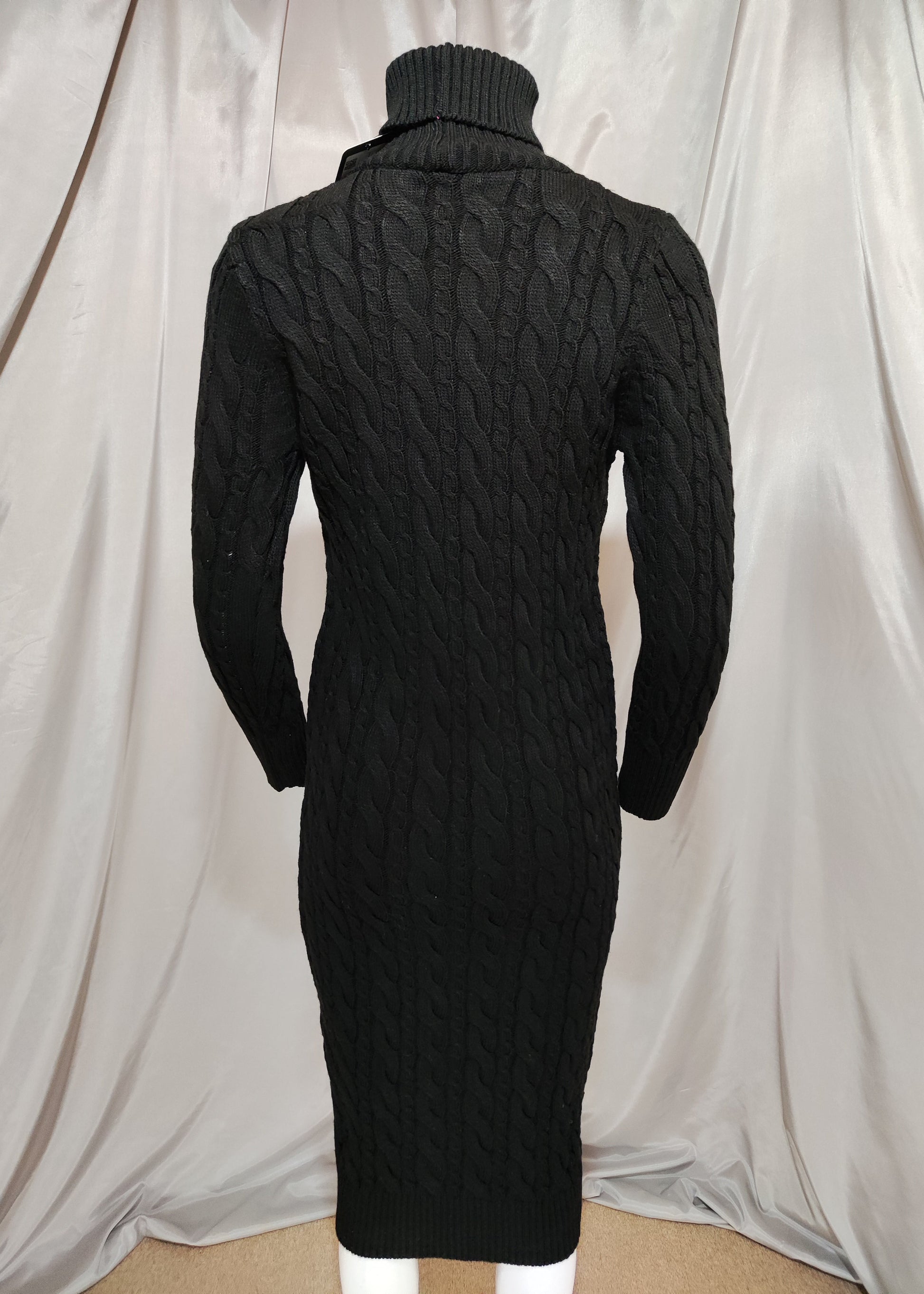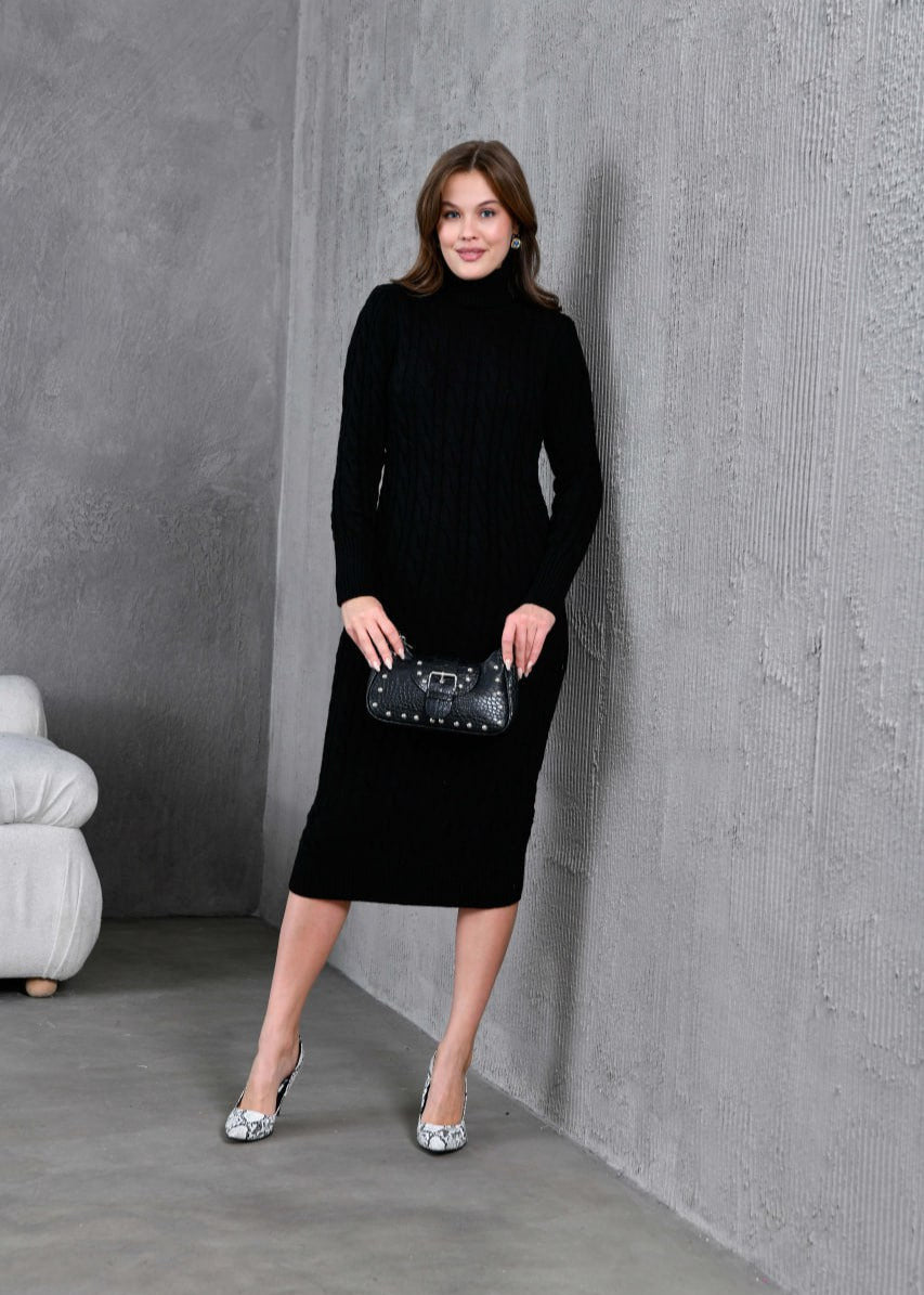 Crna pletena haljina s dolčevita ovratnikom