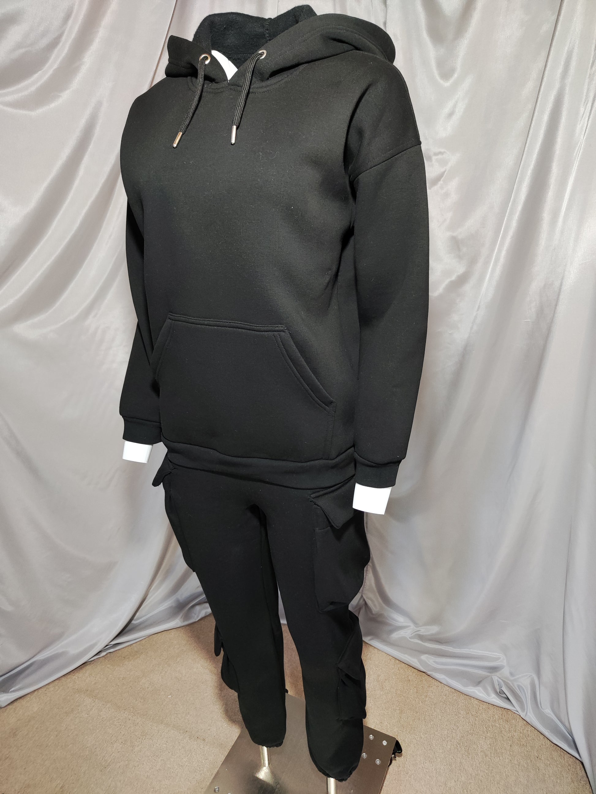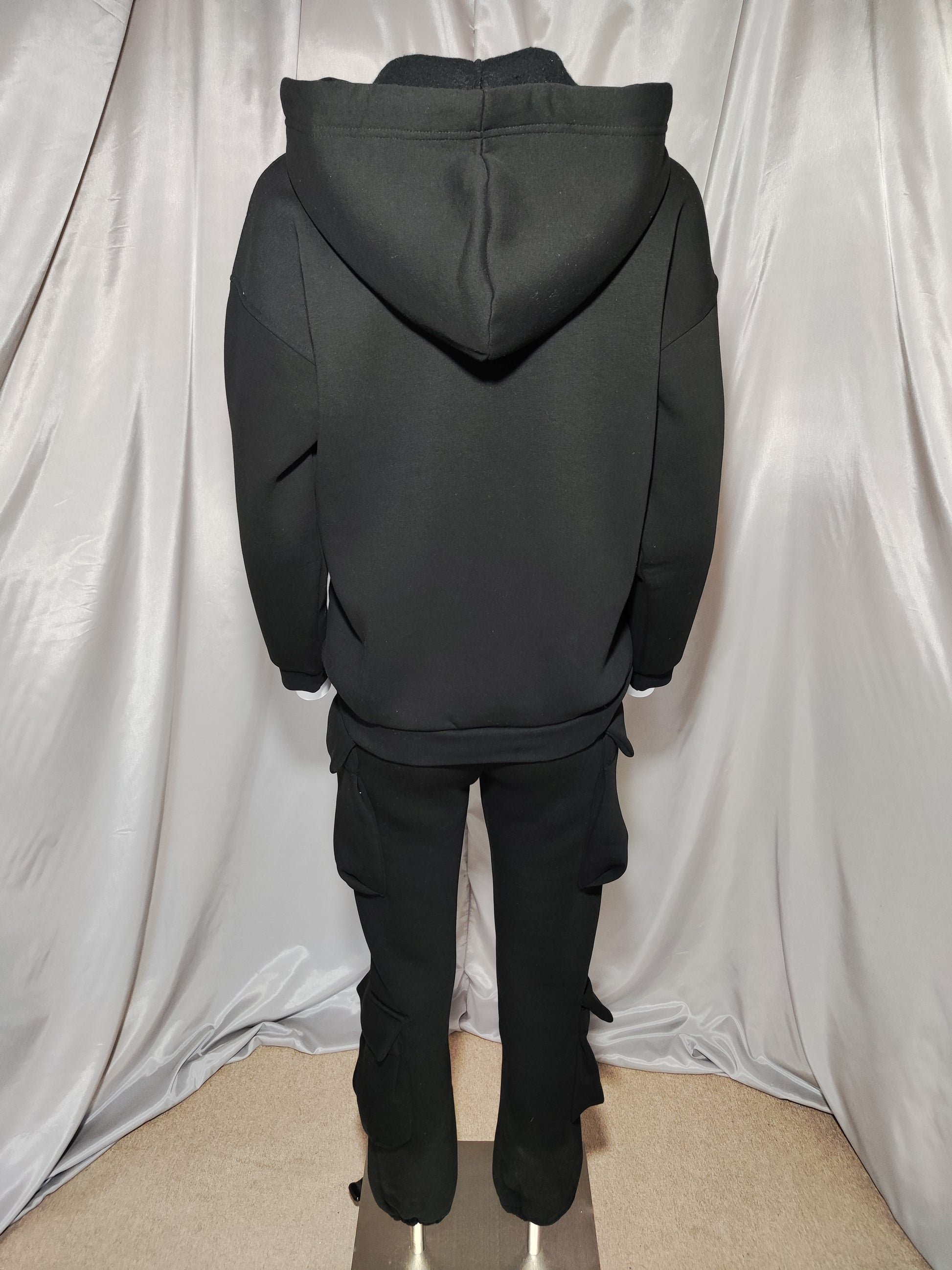 Crna trenirka s kapuljačom i bočnim džepovima
