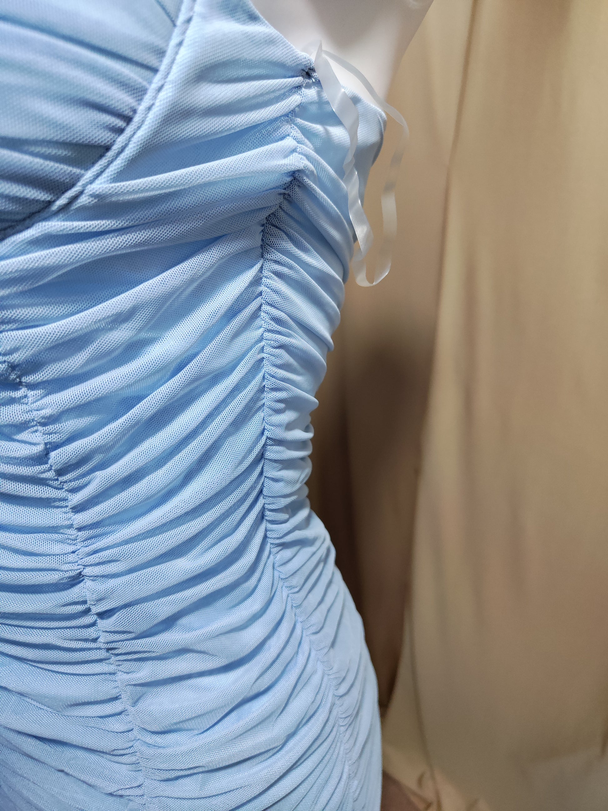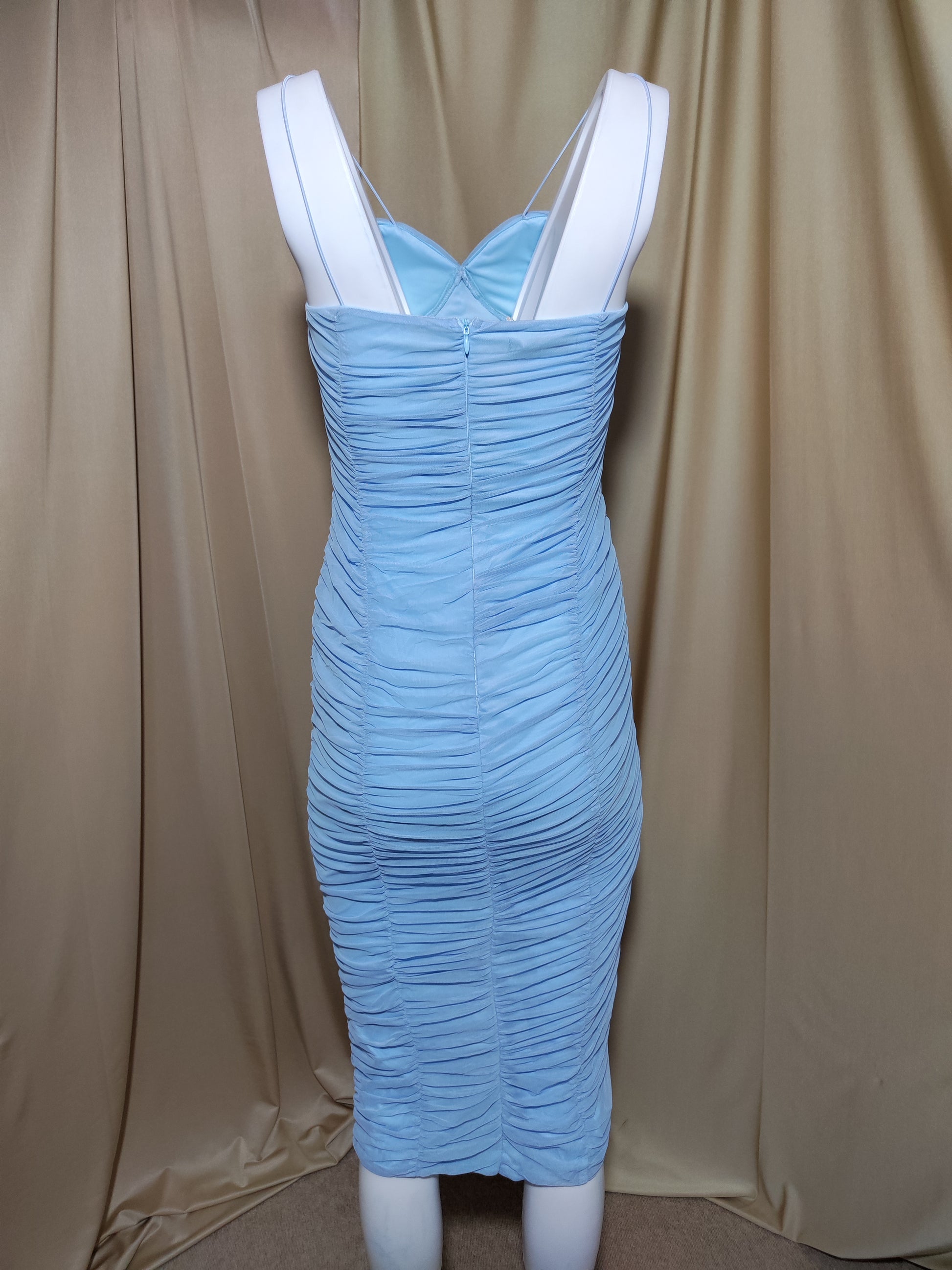 Plava uska haljina na bretele s naborima