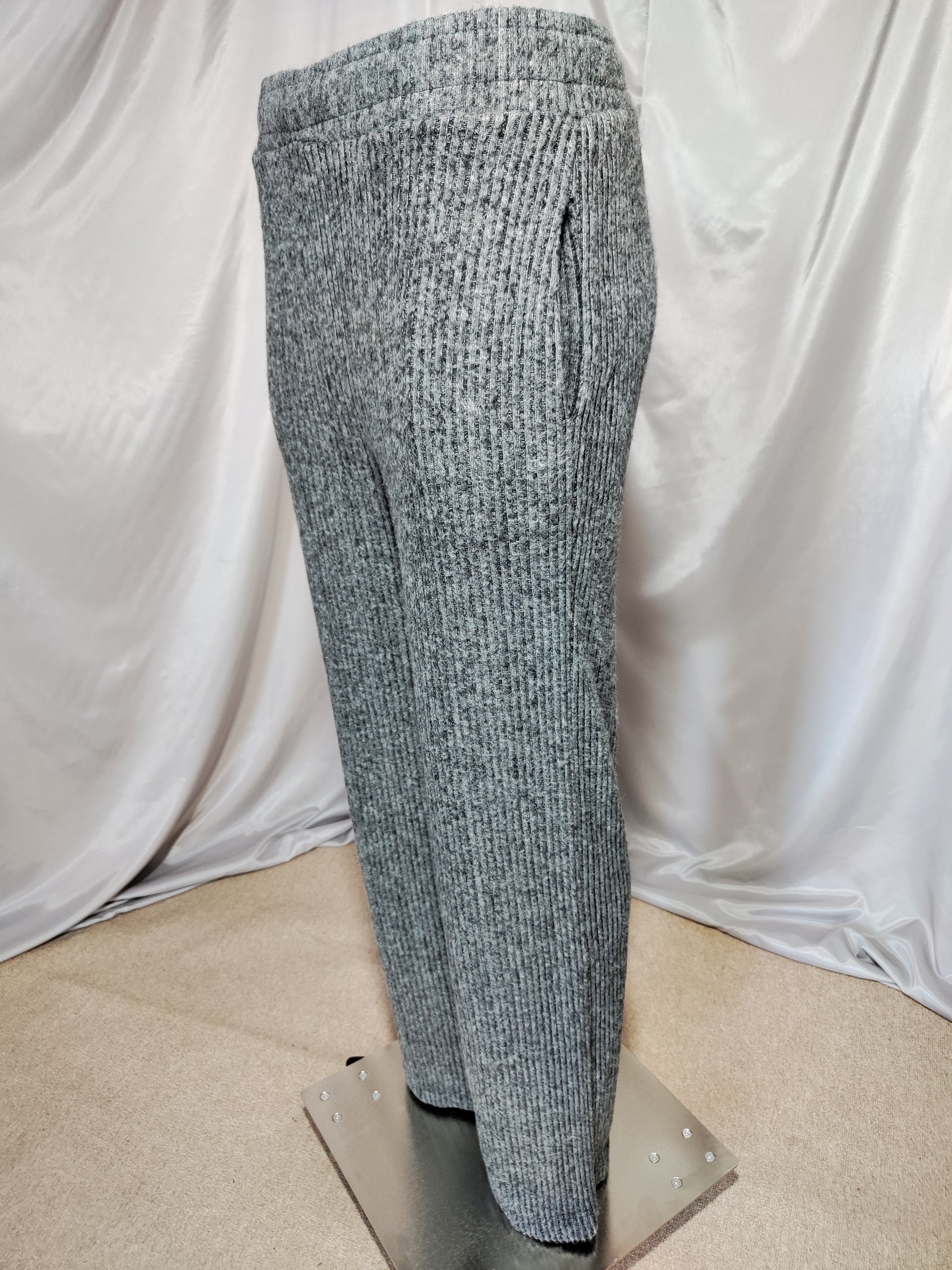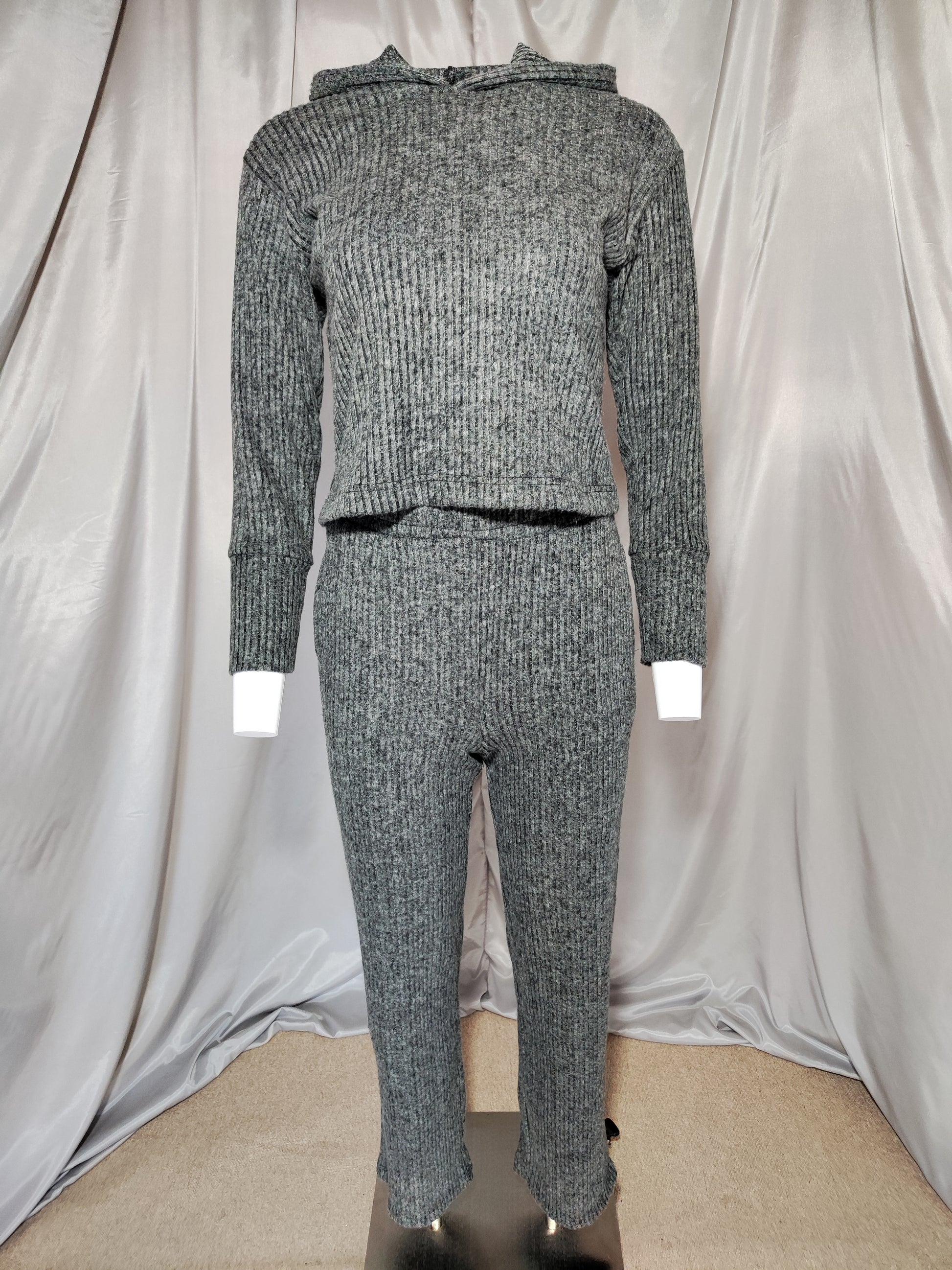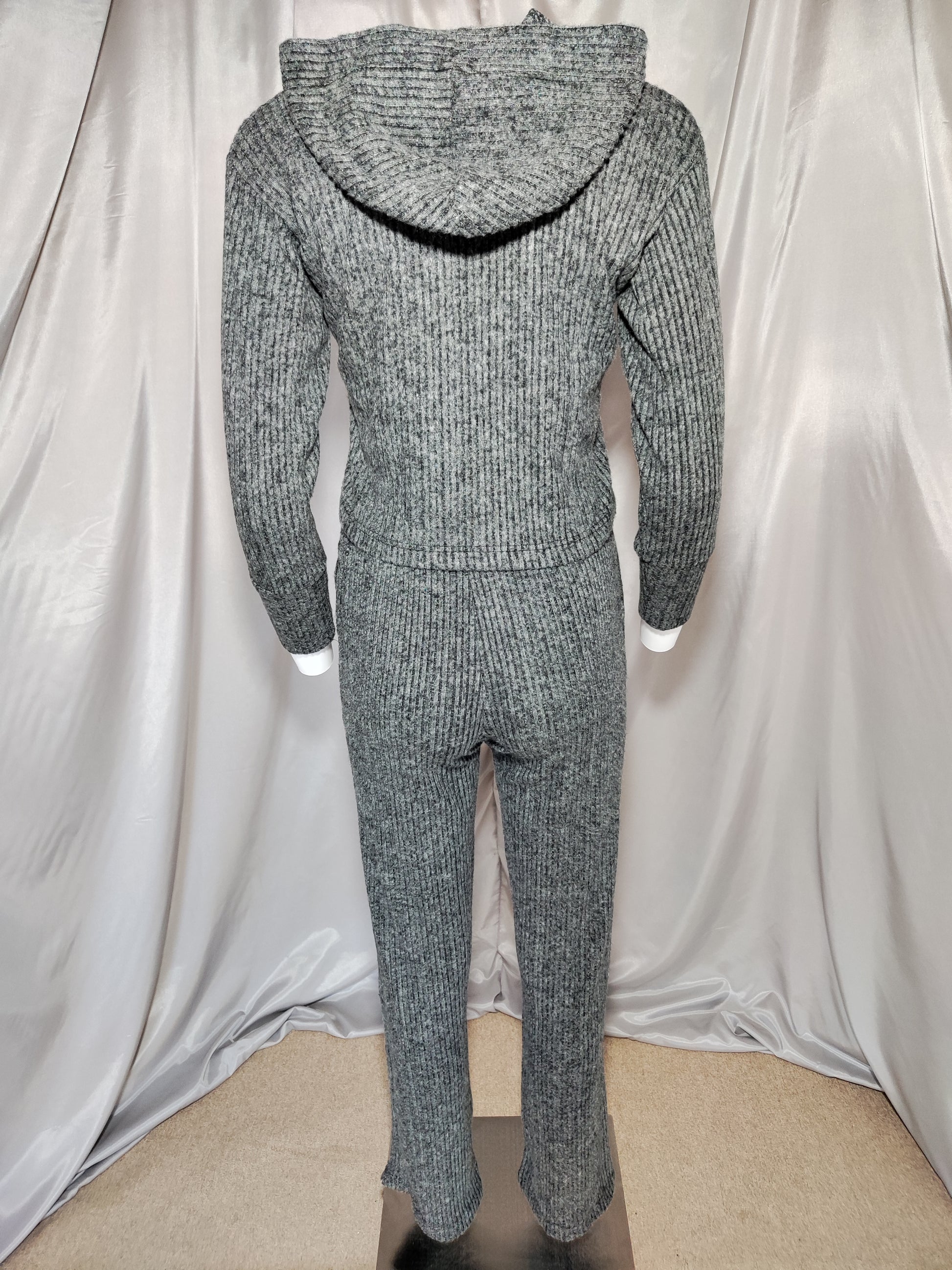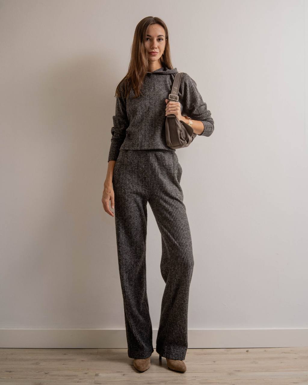 Topao i udoban komplet izrađen od mekanog rebrastog pletiva. Gornji dio ima dug rukav i kapuljaču, dok donji dio dolazi s elastičnim pojasom i bočnim džepovima. Nogavice su ravnog kroja što daje trendi izgled.